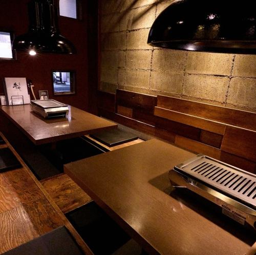 【多彩なシーンに最適!テーブル席】シックな内装が目を引くお洒落な店内で、こだわりの焼肉と豊富な美酒を心ゆくまで堪能できます。最小12名様からの貸切にも対応しておりますので、まずはお気軽にご相談ください。アットホームな活気に包まれながら、思い出に残る素敵な宴会をお楽しみください。